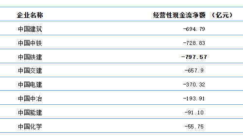 如果说利润下滑只是让人难受,那么经营性现金流净额全部为负,这才是值得令人警醒的信号。要知道,现金流是企业的血液。对于建筑企业来说,没有现金流,就意味着这就是在“失血”运行。